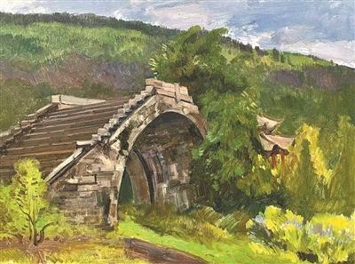 在遵义写生,我始终带着一种崇敬的心情去追寻红色印记。顺着蜿蜒的小路,越过荆棘的山岗,我一路探寻一路画,用色彩和笔触去追寻历史深处的精神花火,追寻老一辈无产阶级革命家的信仰之路,在画面的追求上自然就增加了一份庄严与凝重。犹记得,站在赤水河畔时,伴着哗哗的流水声,当年的战火硝烟在心中荡起,我希望用《奔腾的赤水河》表达对红军战士艰苦卓绝斗争精神的追思。曾见证红军冲锋陷阵的黄石桥,我将其画在崇山峻岭之中,用安静的画面表达自己此时此刻的心境——先烈们,是我心中永远的英雄。在遵义写生的经历,让我真切感受到遵义会议在我党发展中的重要作用,也希望和读者一起,从我在遵义的写生里,感悟红色精神的伟大与不朽。